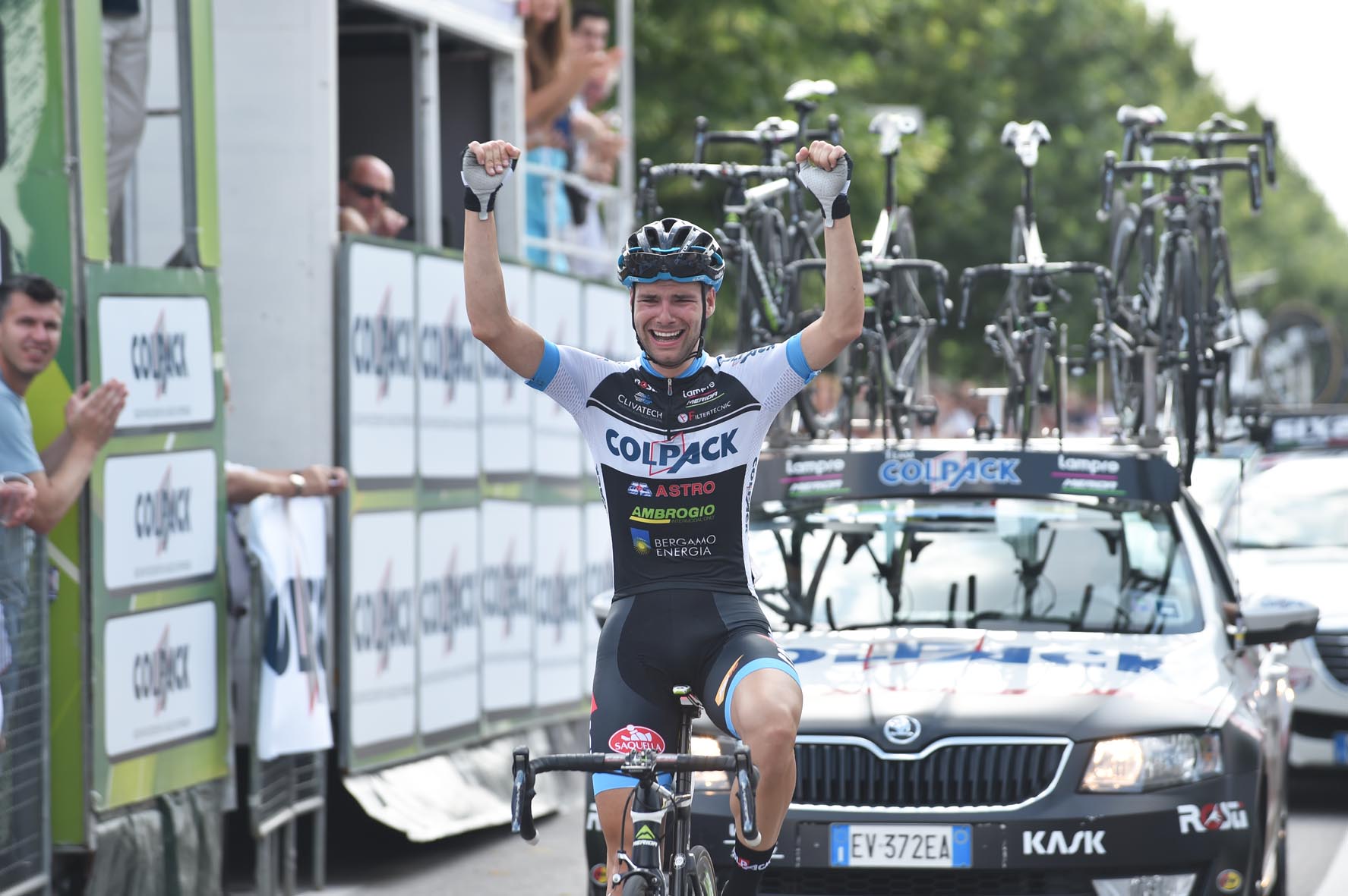 COMONTE DI SERIATE (BG) – Per il secondo giorno consecutivo trionfa il Team Colpack sulle strade di casa nel Campionato Italiano Under 23 ed Elite 2016 di Comonte di Seriate. La formazione di patron Beppe Colleoni vince anche il titolo italiano degli Elite senza contratto per merito del comasco Davide Orrico. Dopo la vittoria ieri del tricolore Under 23 con Simone Consonni e se ci aggiungiamo anche quello a cronometro conquistato da Filippo Ganna mercoledì scorso si tratta di una tripletta tricolore storica per la squadra diretta dal team manager Antonio Bevilacqua.
