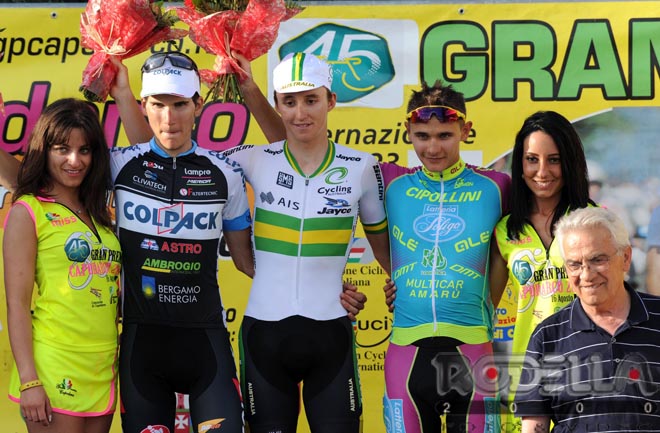 CAPODARCO DI FERMO (FM) – Dominio della Nazionale Australiana oggi al 45° Gran Premio Capodarco – Comunità di Capodarco e vittoria di Jai Hindley con il Team Colpack che piazza in seconda posizione il varesino Edward Ravasi, il migliore degli italiani. Completa il podio il a 12” il bielorusso Aleksandr Riabushenko del Team Palazzago, mentre la formazione diretta da Antonio Bevilacqua piazza all’ottavo posto anche il toscano Umberto Orsini.