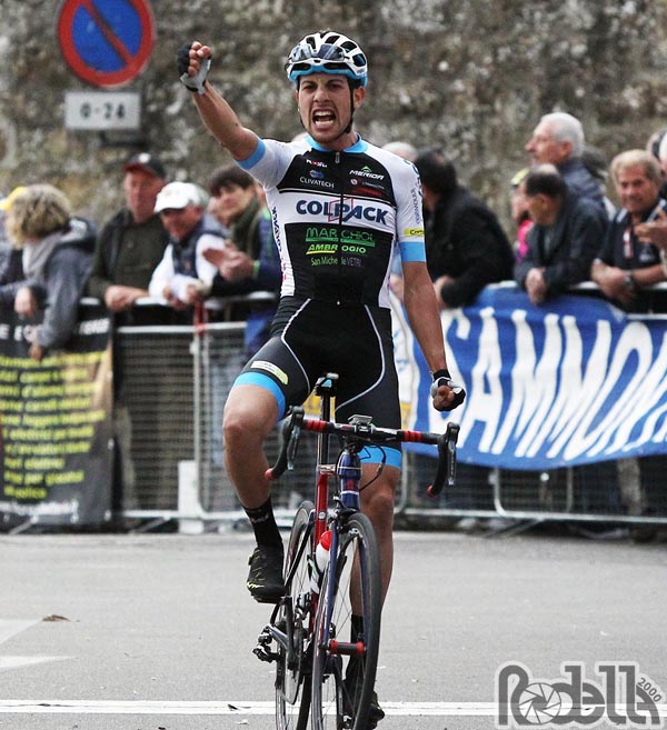 A quel punto nasce la fuga decisiva. In un primo momento sono ancora in sette a prendere il largo, con Alessandro Fedeli e proprio Giovanni Carboni. In seconda battuta riescono a rientrare davanti anche Conci e Federico Sartor. Questi nove corridori se la vanno a giocare nel finale. A 5 chilometri dall’arrivo, un tratto vallonato con vento laterale, Giovanni Carboni trova l’allungo decisivo e, sfruttando anche le sue doti da cronoman e l’ottimo lavoro di stopper alle sue spalle dei compagni Fedeli e Sartor, riesce a tagliare per primo il traguardo. Ottimo anche il sesto posto di Federico Sartor.