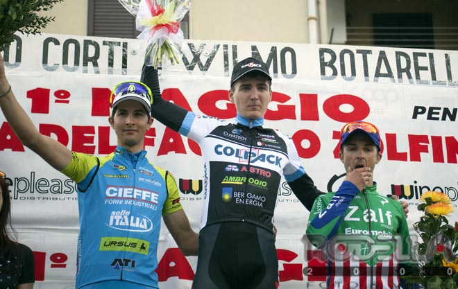 Nel finale evadono in 12 corridori tra i quali proprio Mark Padun ed il compagno Fausto Masnada. In salita, a 20 chilometri dalla conclusione, Padun sferra l’attacco decisivo. Formidabile la sua azione che lo porta verso la sua prima vittoria della stagione. Dietro inseguono in quattro con Masnada che chiude in quinta posizione. Settima piazza per il toscano Umberto Orsini (nella foto Rodella, l’arrivo di Padun).