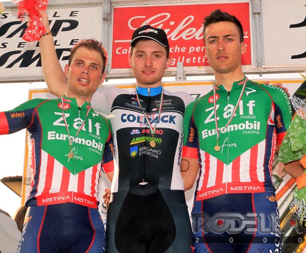 La prima parte di gara è stata caratterizzata da una corposa fuga formata prima da 18 corridori e poi altri 20 che si sono aggiunti alla testa della corsa, prima di essere tutti ripresi al chilometro 80. Ad una sessantina di chilometri dall’arrivo è evasa una coppia formata da Ballerini (Hopplà) e Vendrame (Zalf). A quel punto è stata proprio la Colpack a prendere in mano la situazione – considerato che Consonni aveva dato segnali positivi ai compagni – e quindi ad andare a chiudere sulla fuga. Nel finale si sono messi in evidenza Oliviero Troia e Simone Bettinelli, ma poi tutti al servizio di Consonni che non ha sbagliato la volata, regalando alla squadra del presidente Beppe Colleoni la sesta vittoria della stagione 2016 su strada (foto Rodella).