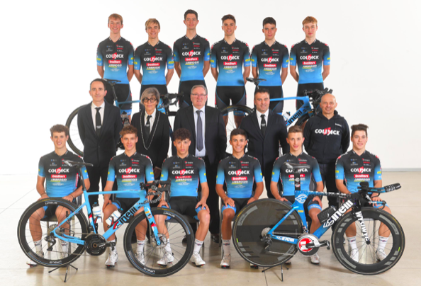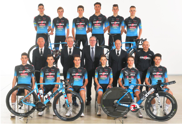 La formazione Under 23 da sinistra in prima fila: Michael Minali, Nicola Plebani, Francesco Giordano, Nicolas Gomez (Colombia), Davide Persico, Thomas Trainini.