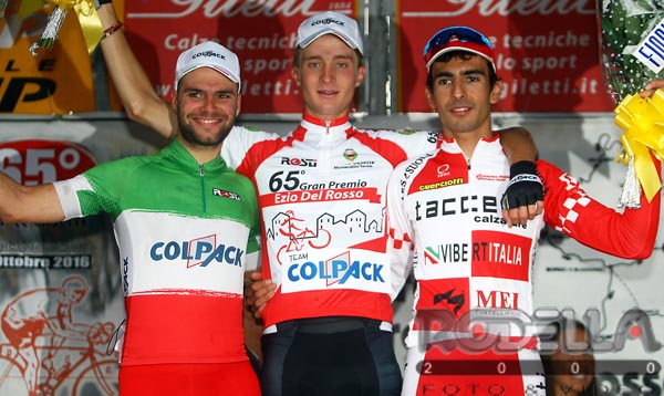 MONTECATINI TERME (PT) – Le strade di casa, quelle della Toscana, esaltano Umberto Orsini che a Montecatini Terme oggi ha vinto in solitaria il 65° Gran Premio Ezio Del Rosso, regalando un’altra giornata memorabile al Team Colpack. Festa completata dal secondo posto del comasco Davide Orrico, campione italiano degli Elite s.c.